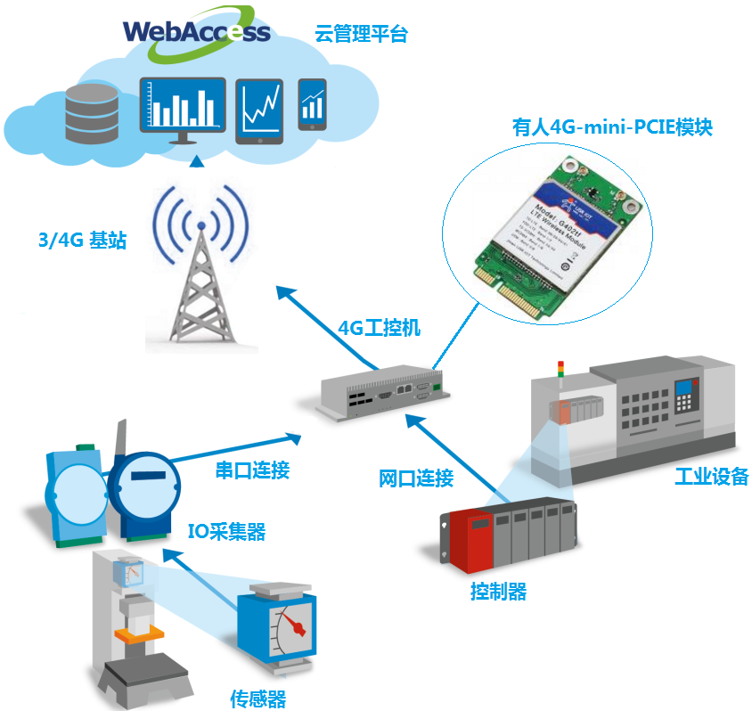 1:實現(xiàn)功能:研華工控機,內部自帶mini-PCIE接口,內部可以插接mini-PCIE接口的WiFi和4G模塊,實現(xiàn)工控機的聯(lián)網(wǎng)。連接上4G模塊后,工控機不用連接寬帶網(wǎng)絡即可實現(xiàn)工控機上網(wǎng),可以把現(xiàn)場的數(shù)據(jù)發(fā)送到遠端工控云管理平臺上。