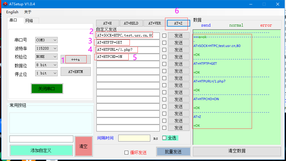 3.配置完成后,發(fā)送AT+Z重啟設備,參數生效