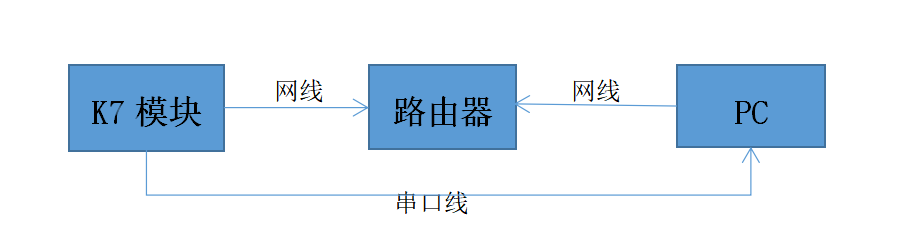 以太網(wǎng)模塊K7網(wǎng)口用網(wǎng)線連接電腦網(wǎng)口,電腦IP和K7的IP設(shè)置同一網(wǎng)段。(或者K7網(wǎng)口用網(wǎng)線接路由器,電腦也連接同一個路由器。K7用串口設(shè)置軟件設(shè)置DHCP,動態(tài)獲取IP)
