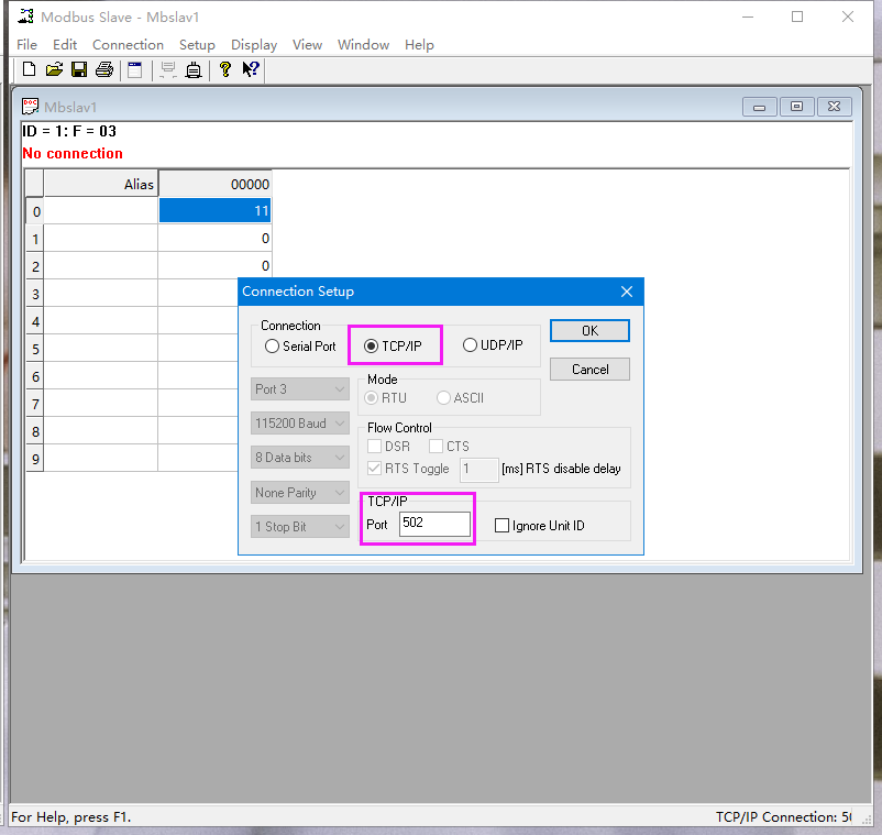 MODBUS savle軟件設(shè)置MODBUS TCP/IP。設(shè)置一個端口號502給K7模塊用