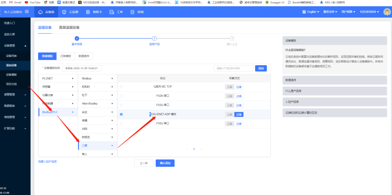 1.登錄有人云賬號(hào)和密碼,點(diǎn)擊添加設(shè)備,輸入PLCNET510的SN和MAC,點(diǎn)擊下一步