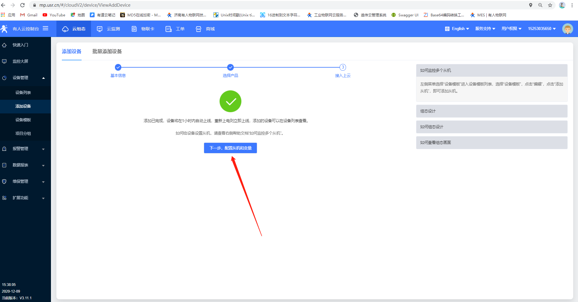5. 點(diǎn)擊同步模板,云端設(shè)備添加完成,等待上線