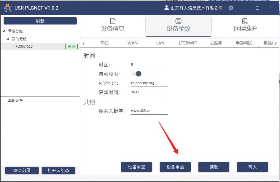 7.設(shè)備參數(shù)LAN口IP和PLC的IP在同一個(gè)網(wǎng)段