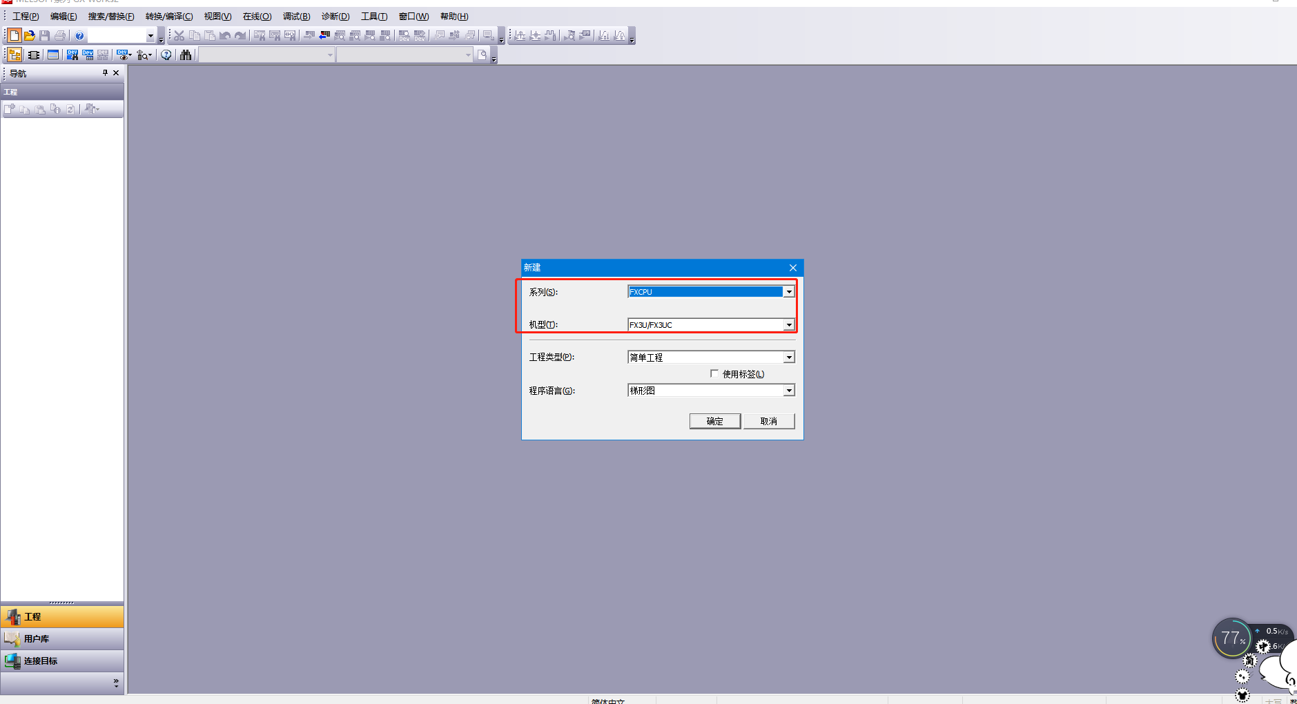 10.打開三菱上位機(jī)軟件,新建工程,選擇對(duì)應(yīng)PLC型號(hào)
