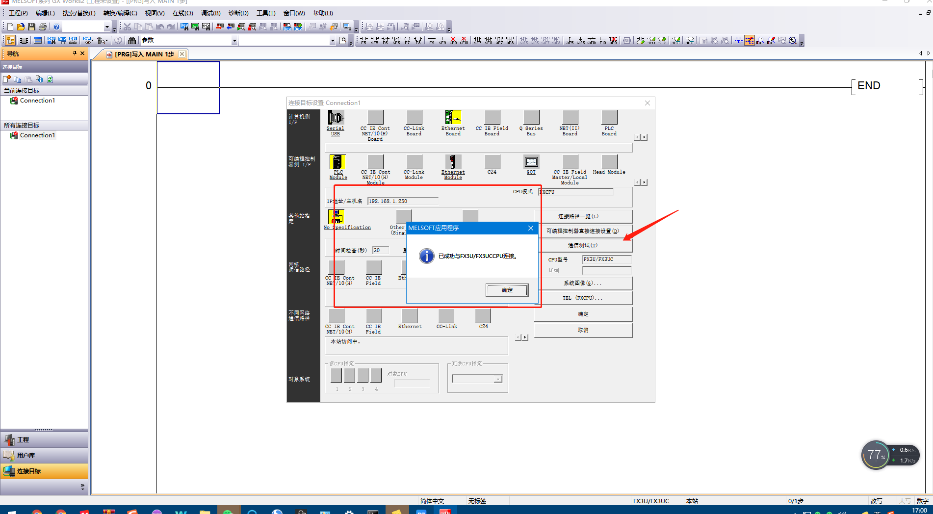 13.點(diǎn)擊通信測(cè)試,和PLC建立連接
