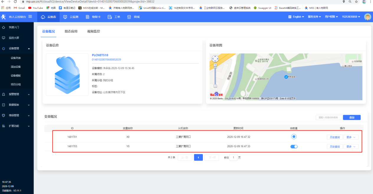 9.可以在云端的數(shù)據(jù)點看到數(shù)據(jù)采集