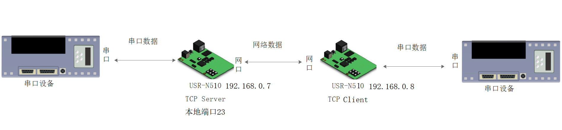 兩個(gè)USR-N510-H7產(chǎn)品,USB-RS485串口線接N510串口,注意485接線線序,USB-RS485 A線接N510 串口的A端子,USB-RS485 B線接N510 串口的B端子,USB頭插入電腦USB口。