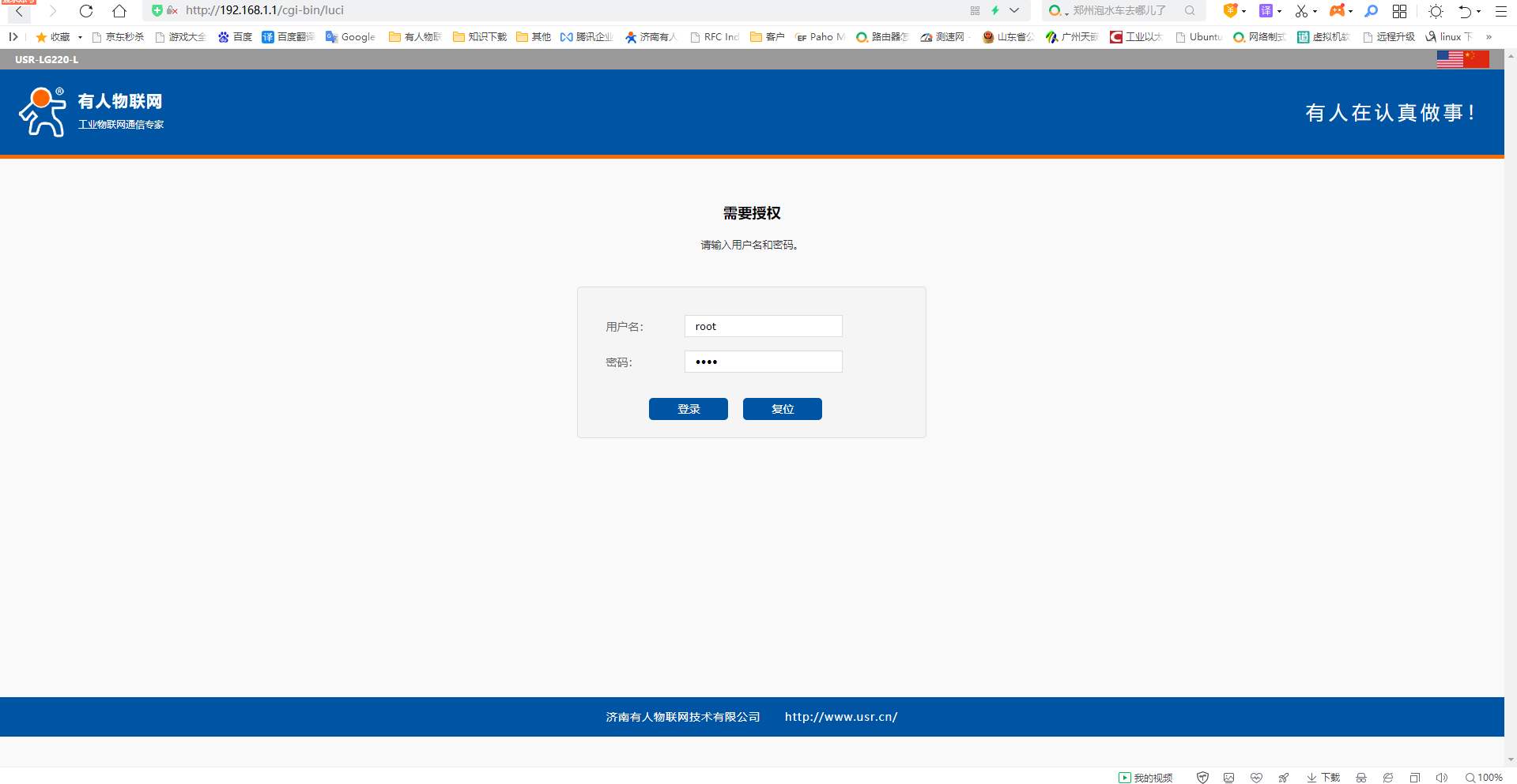 2、瀏覽器輸入U(xiǎn)SR-LG220-L默認(rèn)的IP,登錄USR-LG220-L內(nèi)置網(wǎng)頁(yè),默認(rèn)登錄密碼是admin。