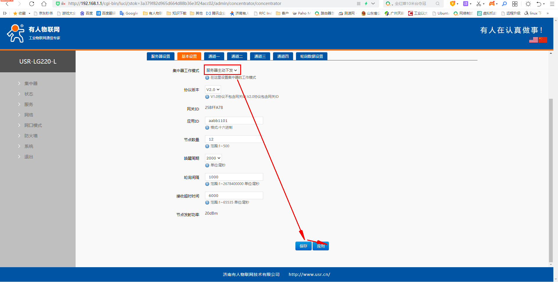 3、USR-LG220-L網(wǎng)頁(yè)集中器參數(shù)設(shè)置: