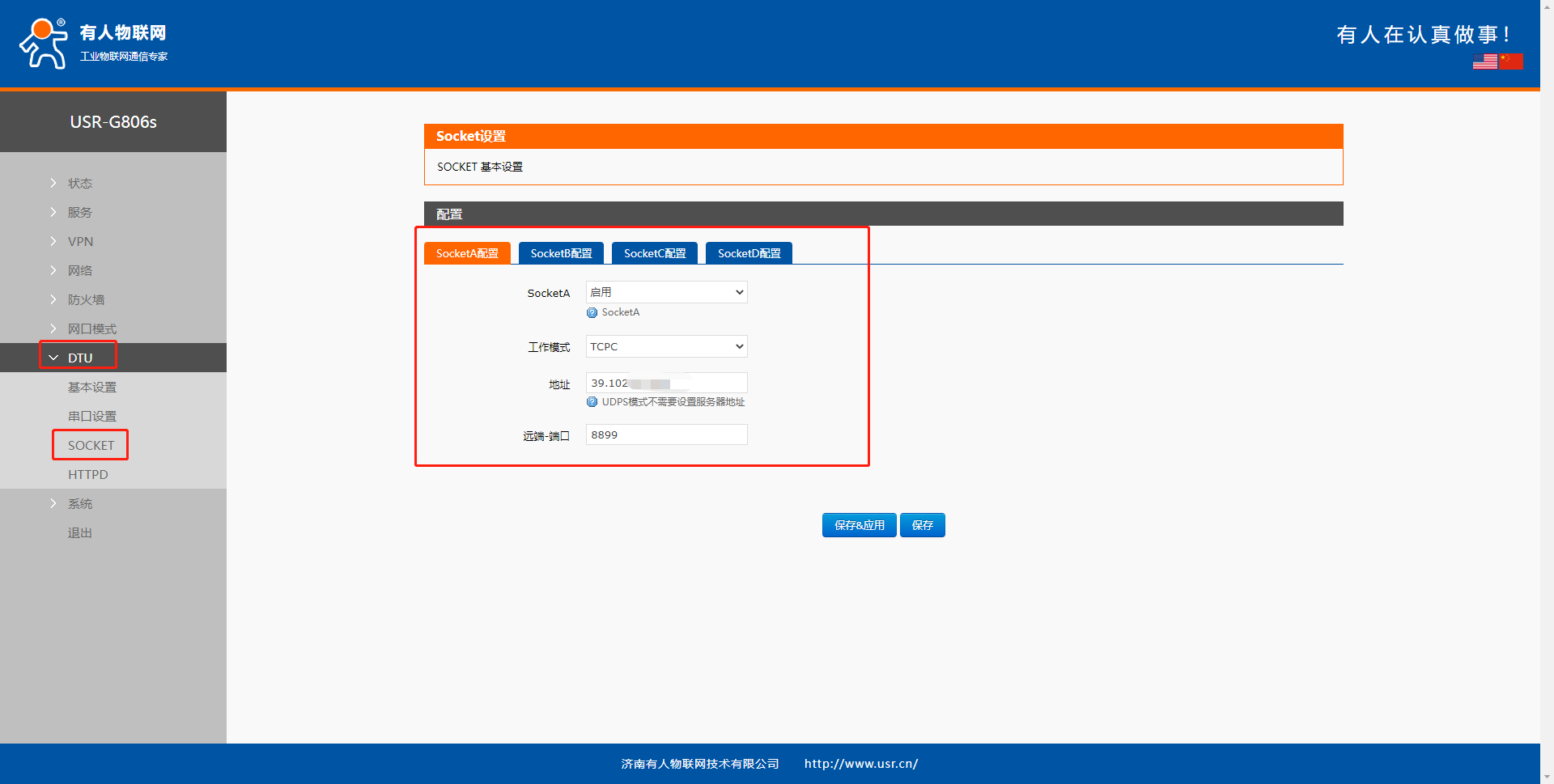 4>設(shè)置socketA的網(wǎng)絡(luò)參數(shù),這里以SOCKETA為例,設(shè)置其他幾路SOCKET也是一樣的方法。