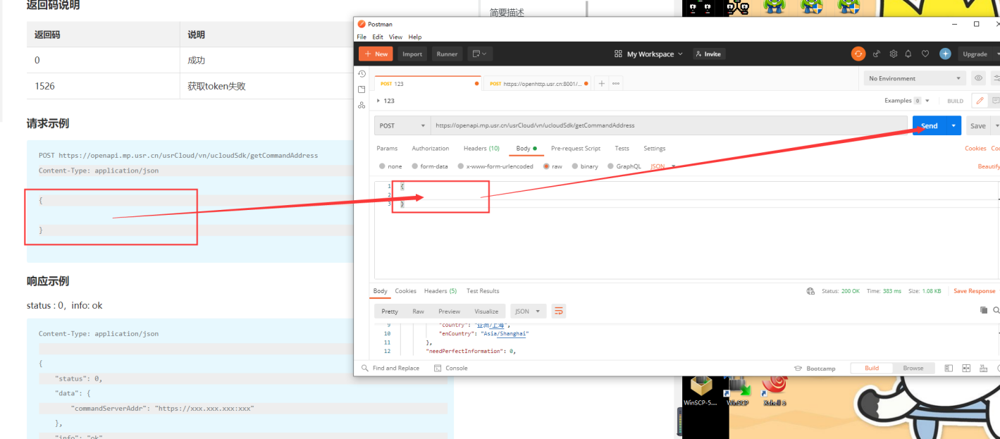 6、將請求示例復(fù)制到body的raw中,之后點擊Send,會生成一個鏈接,這個鏈接是命令下發(fā)地址