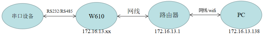 1>硬件連接:W610的串口通過USB轉(zhuǎn)232/485連接到電腦上,接上wifi天線,供電