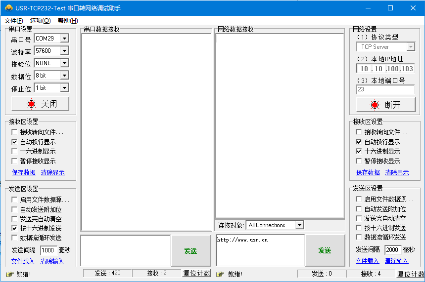 TCP232-TEST串口及網(wǎng)絡(luò)調(diào)試助手軟件:http://m.lifj.com.cn/Download/27.html