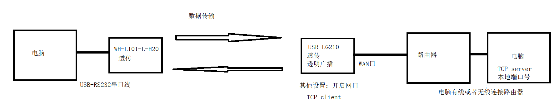 WH-L101-L-H20和USR-LG210連接TCP服務(wù)器-透?jìng)髂J酵该鲝V播示例