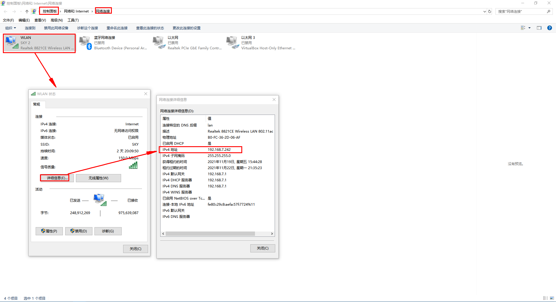 查看無(wú)線網(wǎng)卡狀態(tài),IPv4的IP地址。
