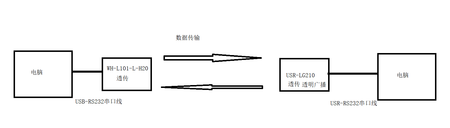 電腦打開2個USR-TCP232-TEST串口軟件,打開對應WH-L101-L-H20和USR-LG210的USB-RS232串口線COM口號,WH-L101-L-H20串口發(fā)送數據,USR-LG210串口接收數據。