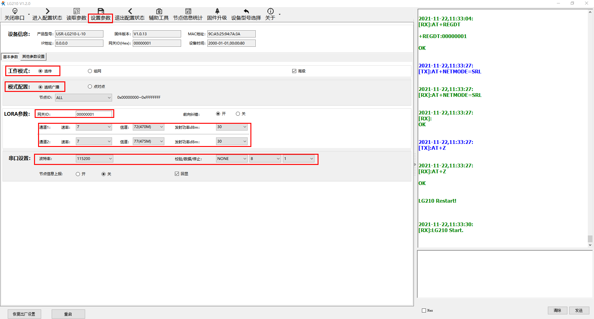 四、USR-LG210參數設置:
