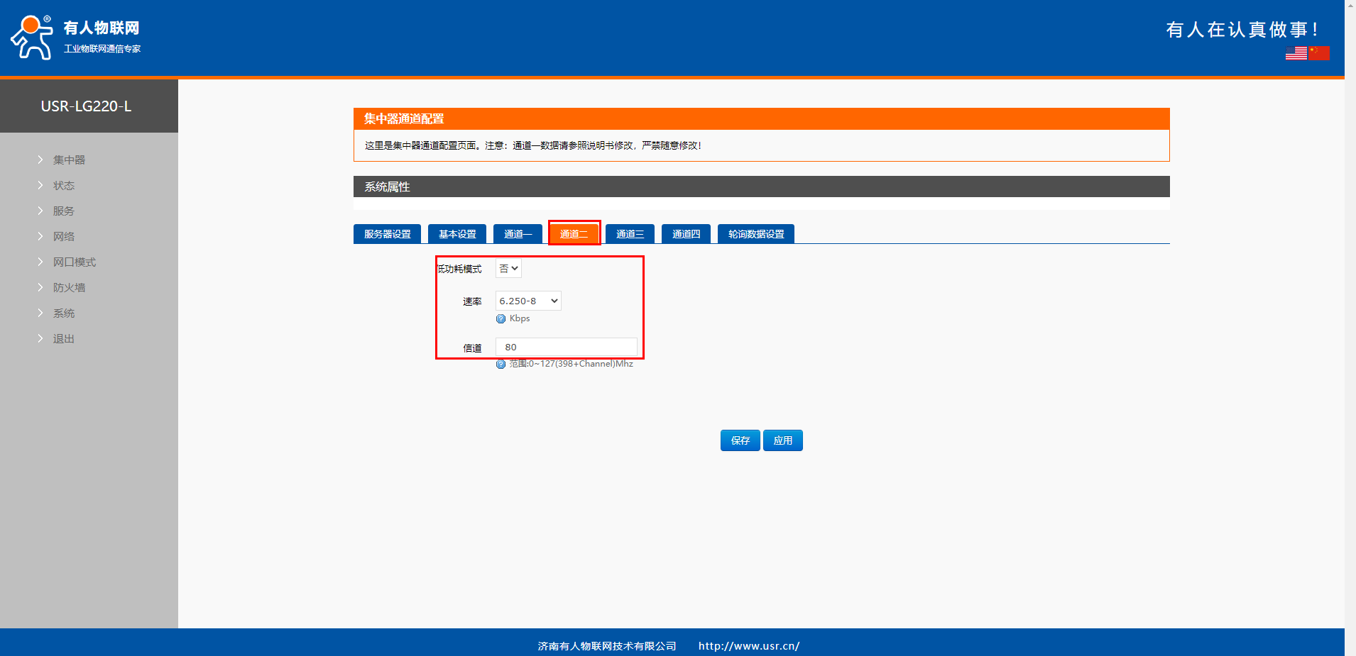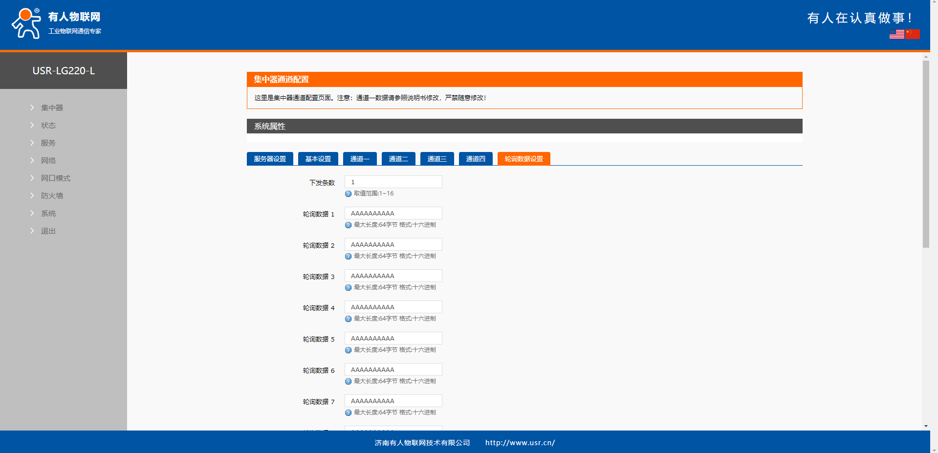 2、配置USR-LG220服務器設置