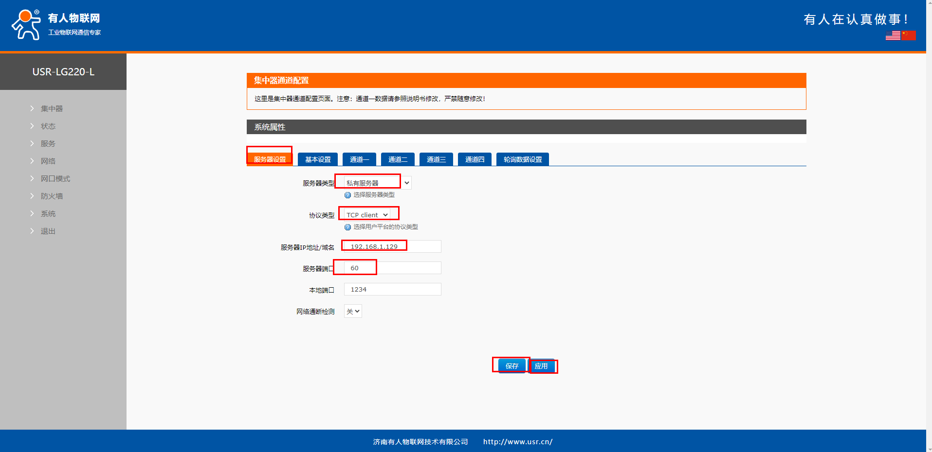 2、配置USR-LG220服務(wù)器設(shè)置