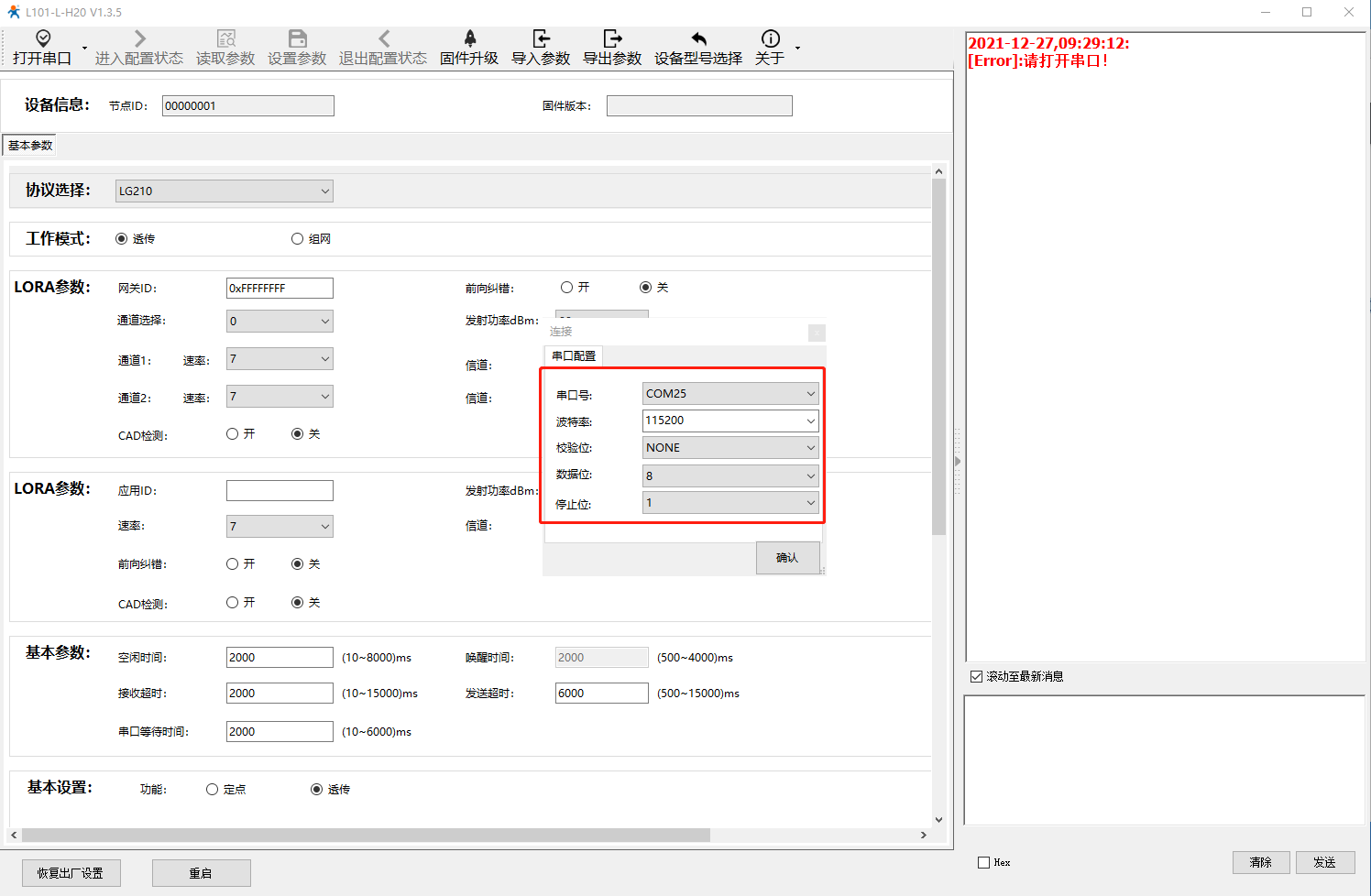 2、選擇A模塊串口,默認(rèn)串口參數(shù)波特率115200、無數(shù)據(jù)位、數(shù)據(jù)位8、停止位1,點(diǎn)擊確認(rèn)。
