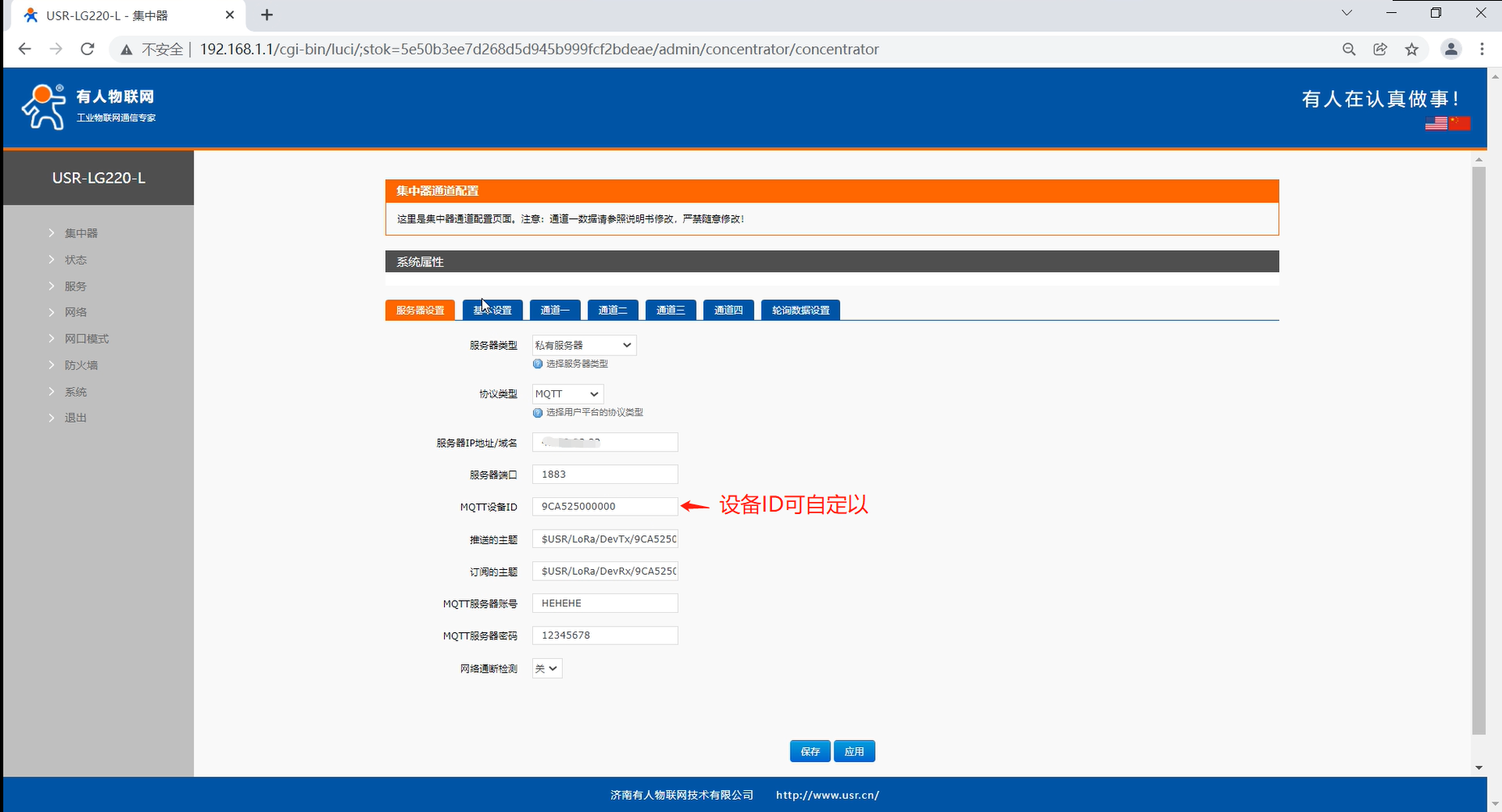 ? 注:MQTT 設(shè)置的內(nèi)容,最大長(zhǎng)度 64 字節(jié);設(shè)置完成點(diǎn)擊應(yīng)用后 20 秒生效。