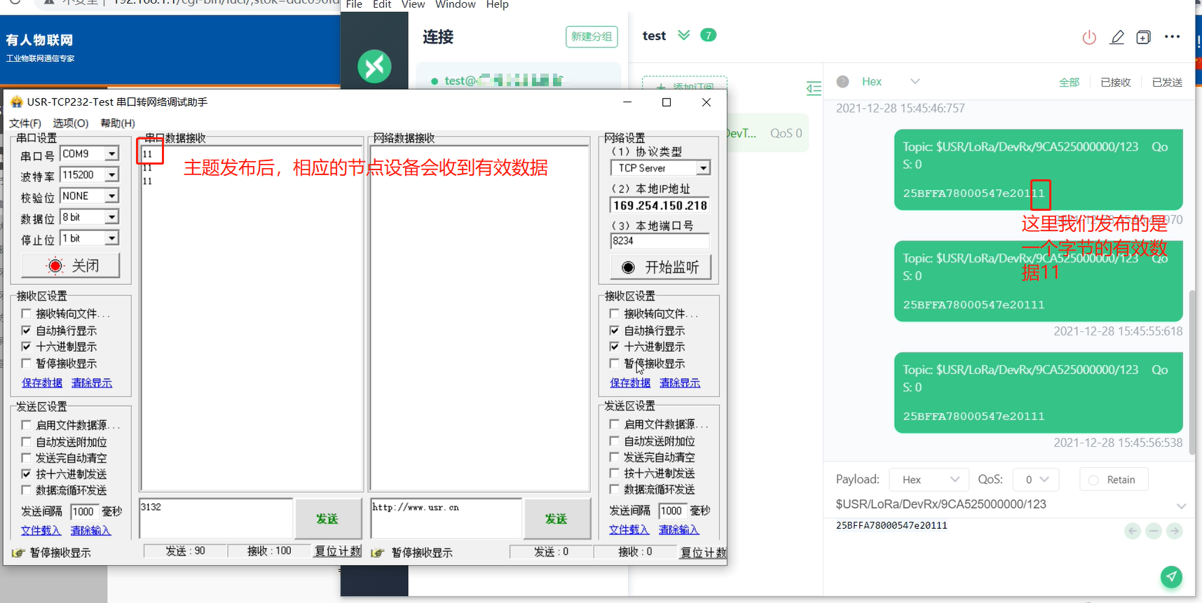Lora節(jié)點(diǎn)串口連接電腦,打開串口,數(shù)據(jù)下發(fā)要遵循集中器與服務(wù)器傳輸協(xié)議(服務(wù)器主動(dòng)下發(fā))