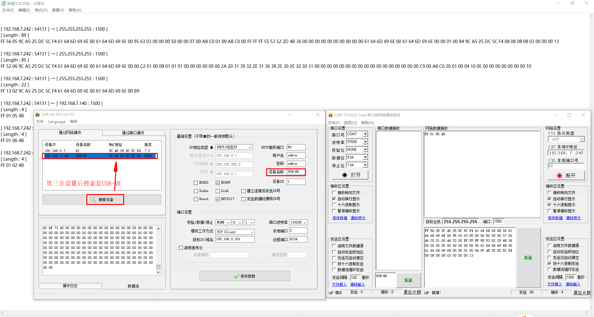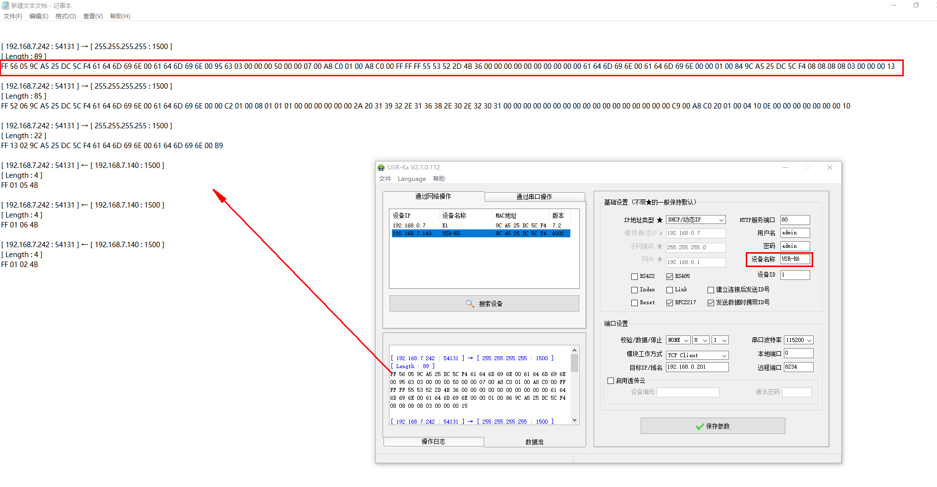 USR-K5網(wǎng)絡(luò)設(shè)置協(xié)議修改設(shè)備名稱測試示例