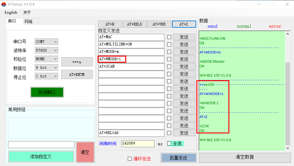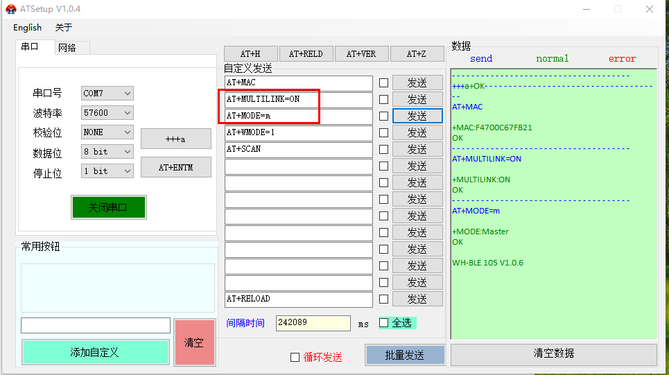 (4)發(fā)送AT+MODE=m 設(shè)置主機(jī)模式
