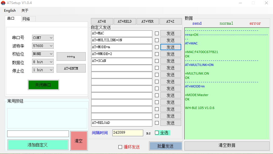 (2)發(fā)送AT+MAC查詢從機MAC:F4 70 0C 68 01 B7