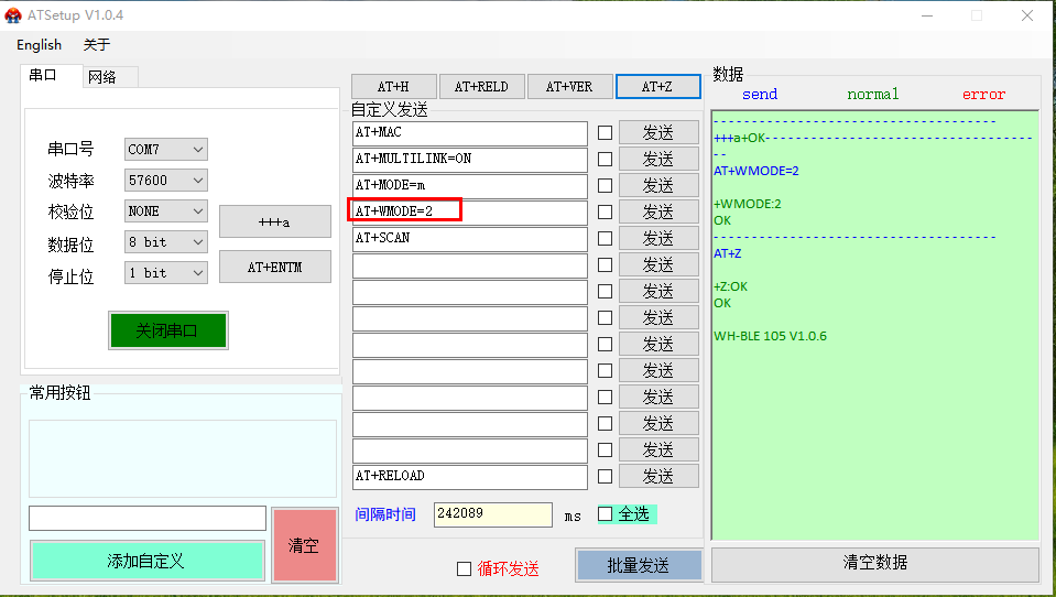 (2)發(fā)送AT+WMODE=2 設置定點模式方式二