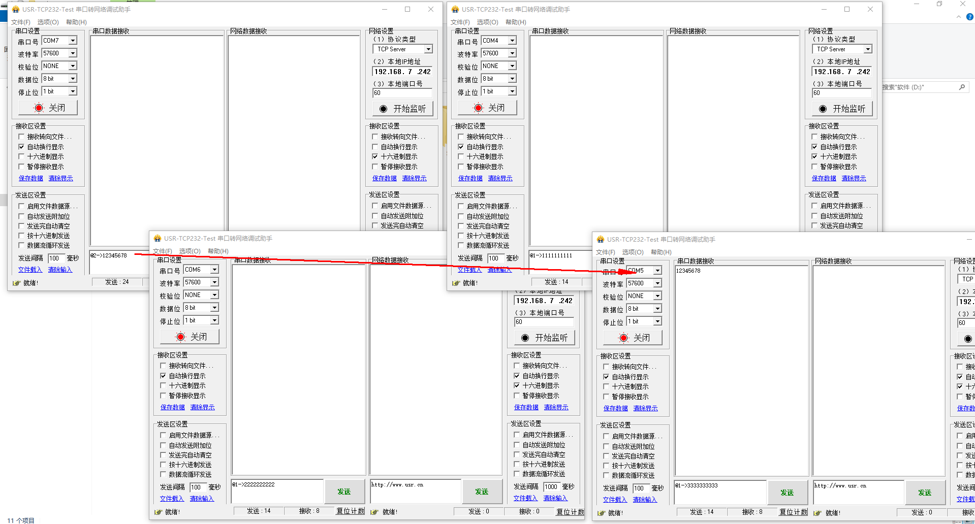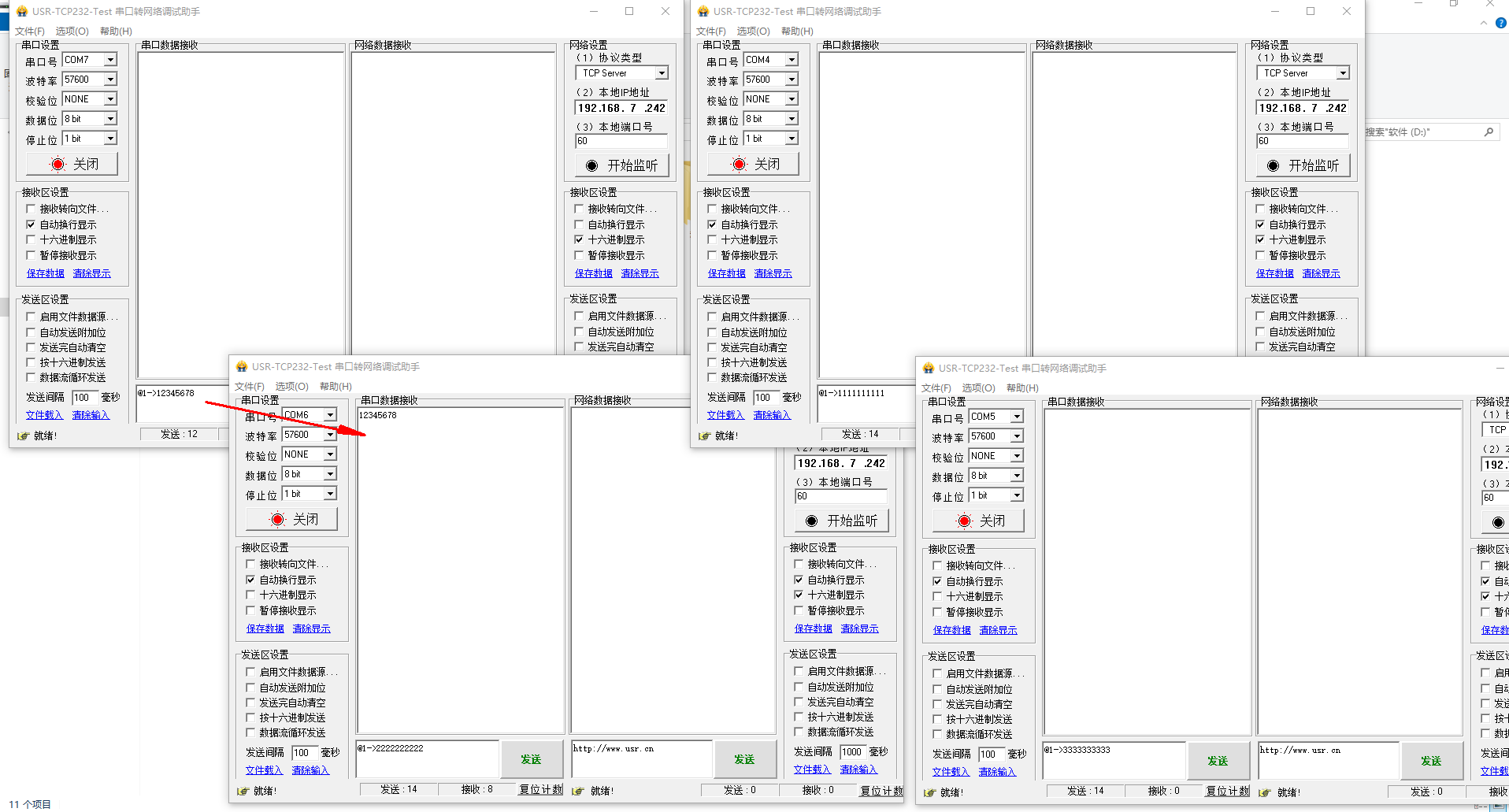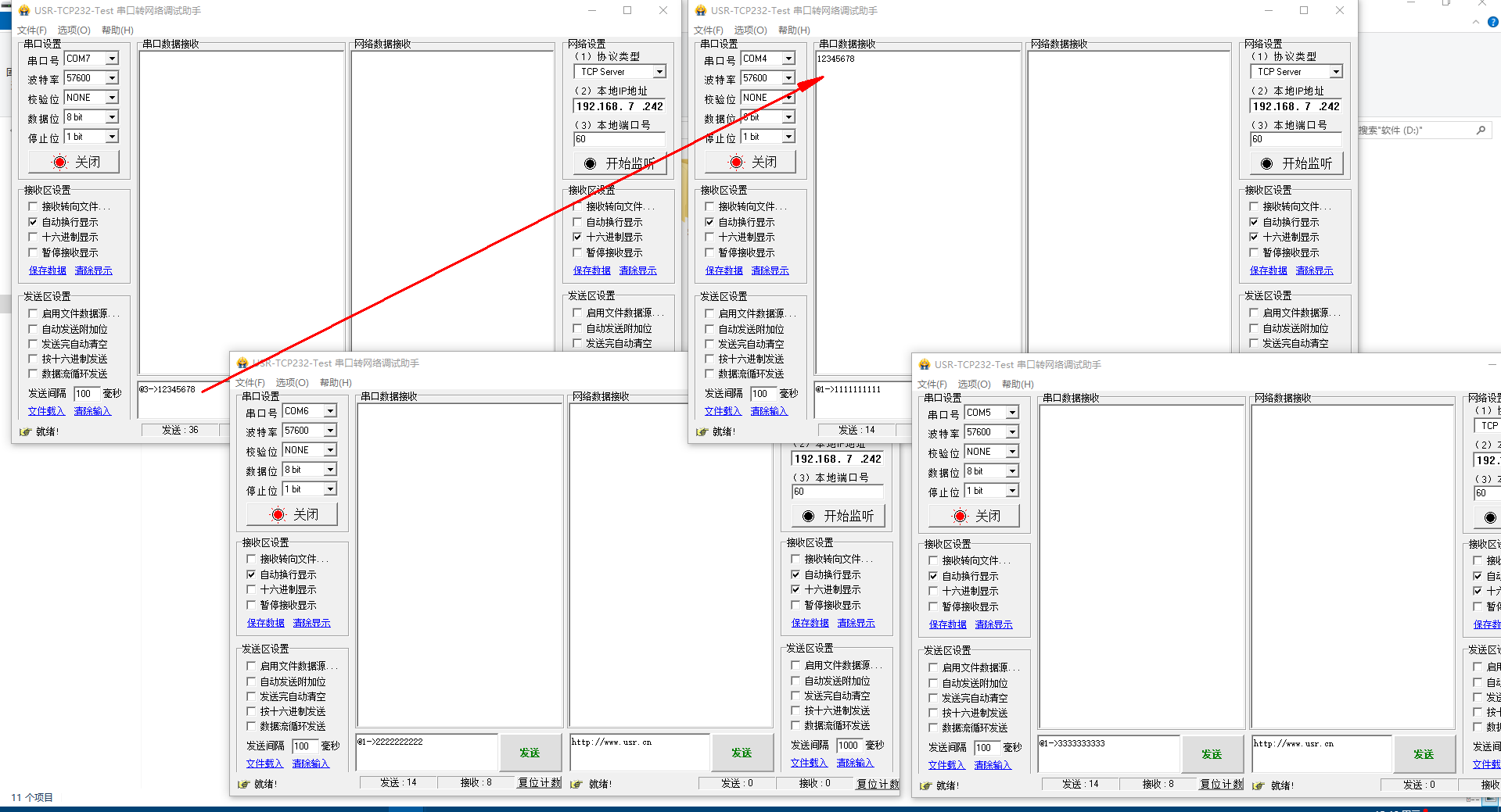 備注:COM7 接的主機,COM4接的從機1,COM5接的從機2,COM6接的從機3。