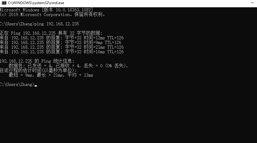 4、此時互相 ping 對端子網(wǎng)也是連通狀態(tài)