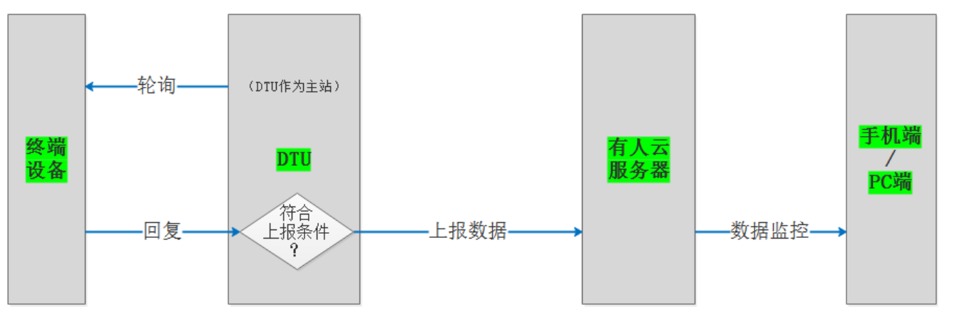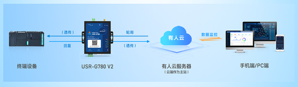 B.云端輪詢:由云平臺主動下發(fā)輪詢指令,G780 只做透傳,可實現(xiàn)分鐘級采集。(DR504/G781/G776/DR514上云方式)