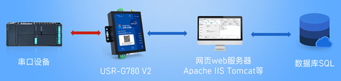 通過G780 V2,連接串口設(shè)備與網(wǎng)絡(luò)服務(wù)器可以,做tcp client去連接自己的公網(wǎng)服務(wù)器,可進(jìn)行數(shù)據(jù)雙向透傳。產(chǎn)品支持兩路Socket鏈接,彼此相互獨立。