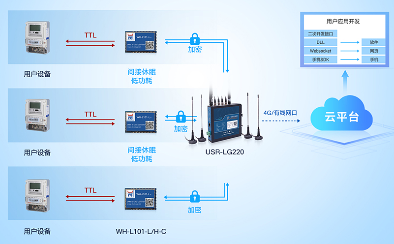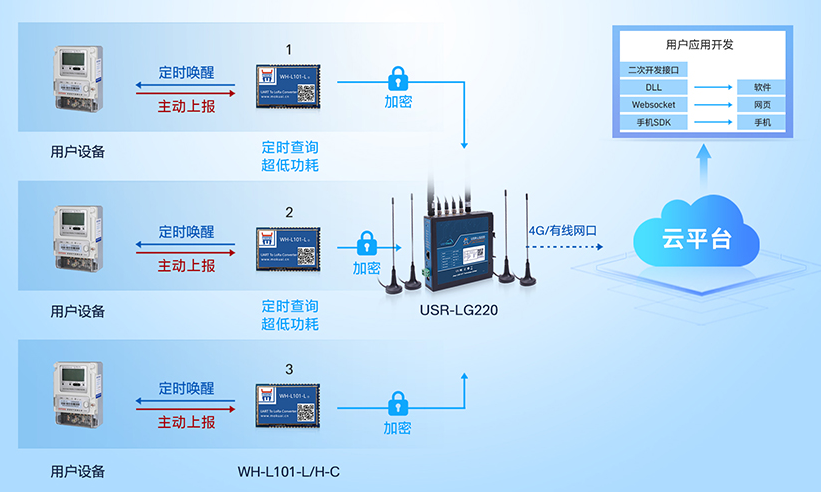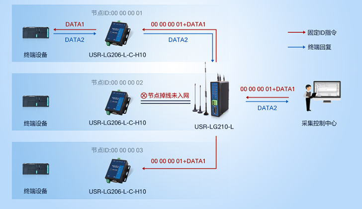 三、2種集中器搭配的lora節(jié)點 1、LG220搭配的lora節(jié)點: 成品設(shè)備:USR-LG206-L-C、USR-LG206-L-H20、USR-DR216 模塊:WH-L101-L-C、WH-L102-L-C、WH-L101-L-H20 2、一期老版LG210搭配的lora節(jié)點: 成品設(shè)備:USR-LG206-L-C-H10 模塊:WH-L101-L-C-H10 3、二期新版LG210搭配的lora節(jié)點: 成品設(shè)備:USR-LG206-L-H20、USR-DR216 模塊:WH-101-L-H20