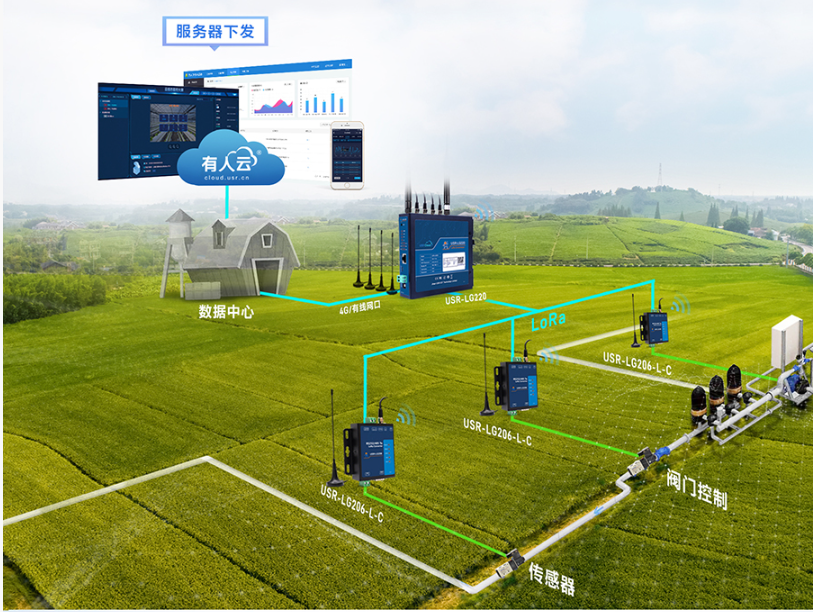 LG220選擇服務(wù)器下發(fā)功能,可快速實現(xiàn)遠(yuǎn)距離數(shù)據(jù)收發(fā),對灌溉、病蟲害、施肥情況在線監(jiān)測,從而減少值守人員數(shù)量,全面提升農(nóng)場生產(chǎn)管理水平,提高經(jīng)濟(jì)效益,降低運營成本