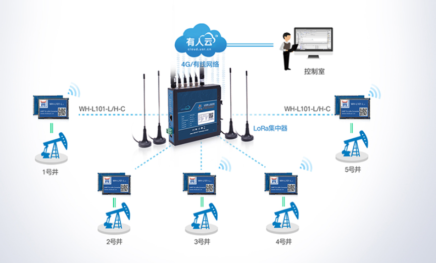 LG220支持在戶外遠(yuǎn)距離條件下無線傳輸,免除資費成本。同時,產(chǎn)品可對多個油田進(jìn)行數(shù)據(jù)監(jiān)測,有序收集各個油田狀態(tài),方便管理和全面檢測。(備注:底端設(shè)備需支持Modbus協(xié)議才能在有人云解析)