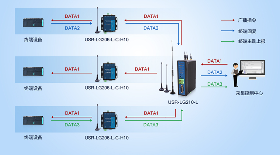 服務(wù)器與設(shè)備間可直接透明傳輸,所收即所發(fā),簡單易用,LG210-L支持一對一和一對多通信。