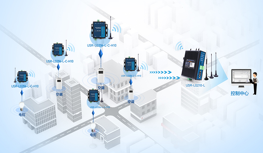 大型辦公樓需對空調(diào)、電燈等設(shè)備進(jìn)行分區(qū)域管理。此時,可選用多個LG210-L與不同區(qū)域內(nèi)的空調(diào)、電燈等設(shè)備連接,分別控制不同區(qū)域內(nèi)相關(guān)設(shè)備的啟停