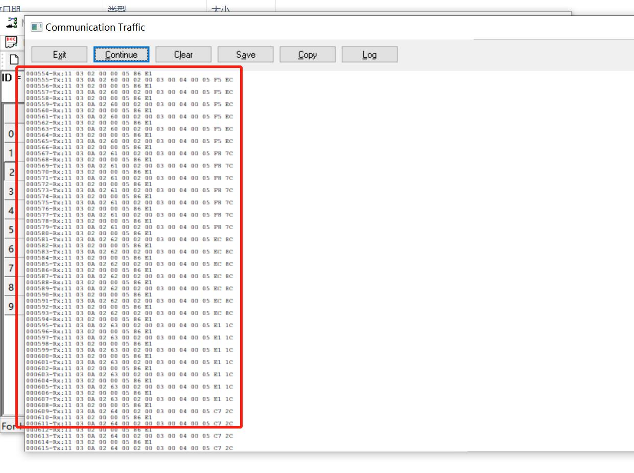 5,設(shè)定完成后,開啟modbus slave,打開報(bào)文檢測(cè),可以看到數(shù)據(jù)往回報(bào)文