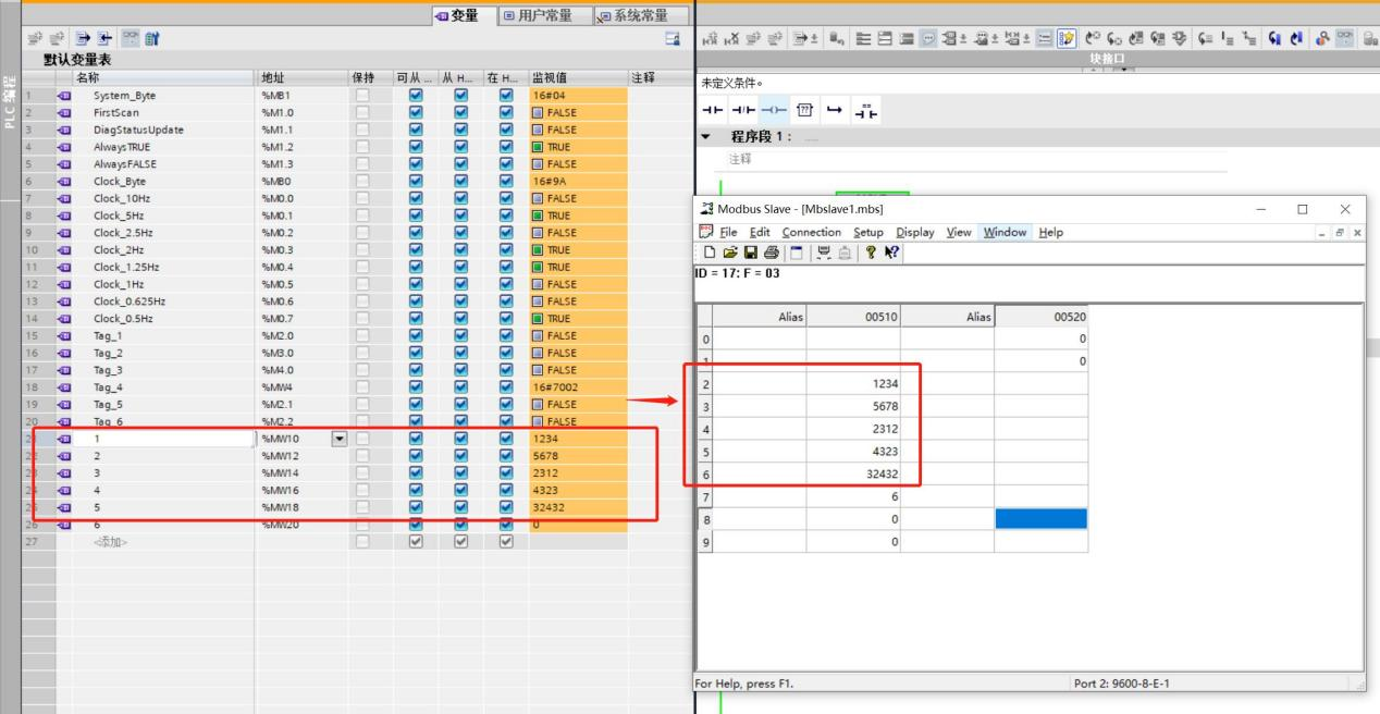 6,此時(shí),代表數(shù)據(jù)報(bào)文往回正常,將modbus slave 中的地址設(shè)定為不同數(shù)據(jù),然后在電腦端進(jìn)行數(shù)據(jù)監(jiān)控