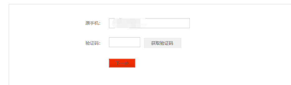 3、在彈出的界面輸入原來的手機(jī)號(hào),獲取驗(yàn)證碼后輸入驗(yàn)證碼,點(diǎn)擊下一步