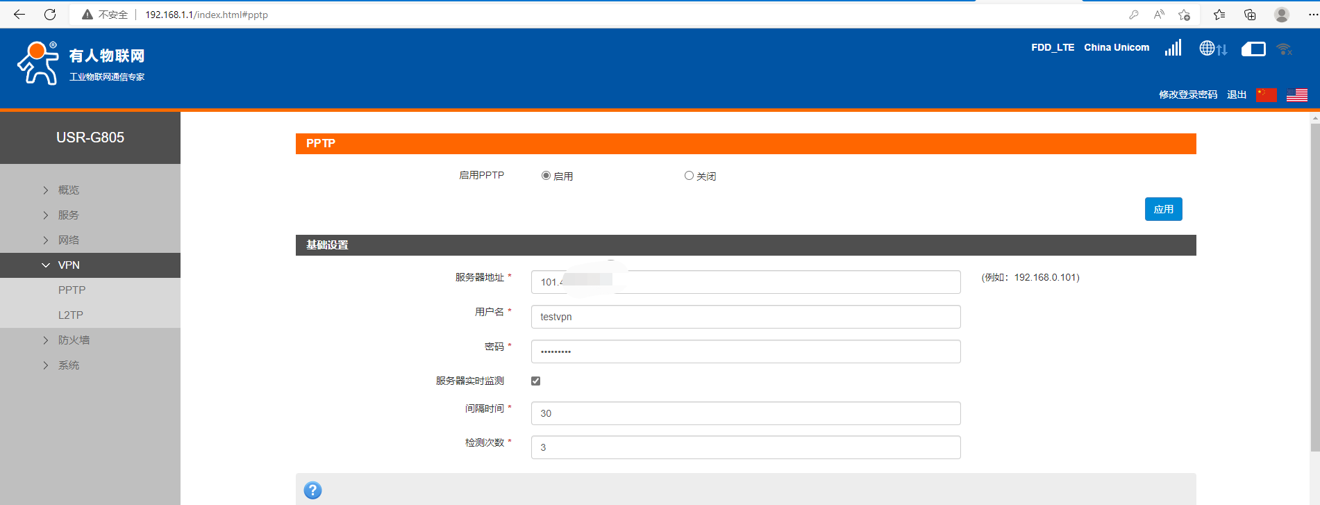 USR-G805連接PPTP VPN服務(wù)器測(cè)試方法