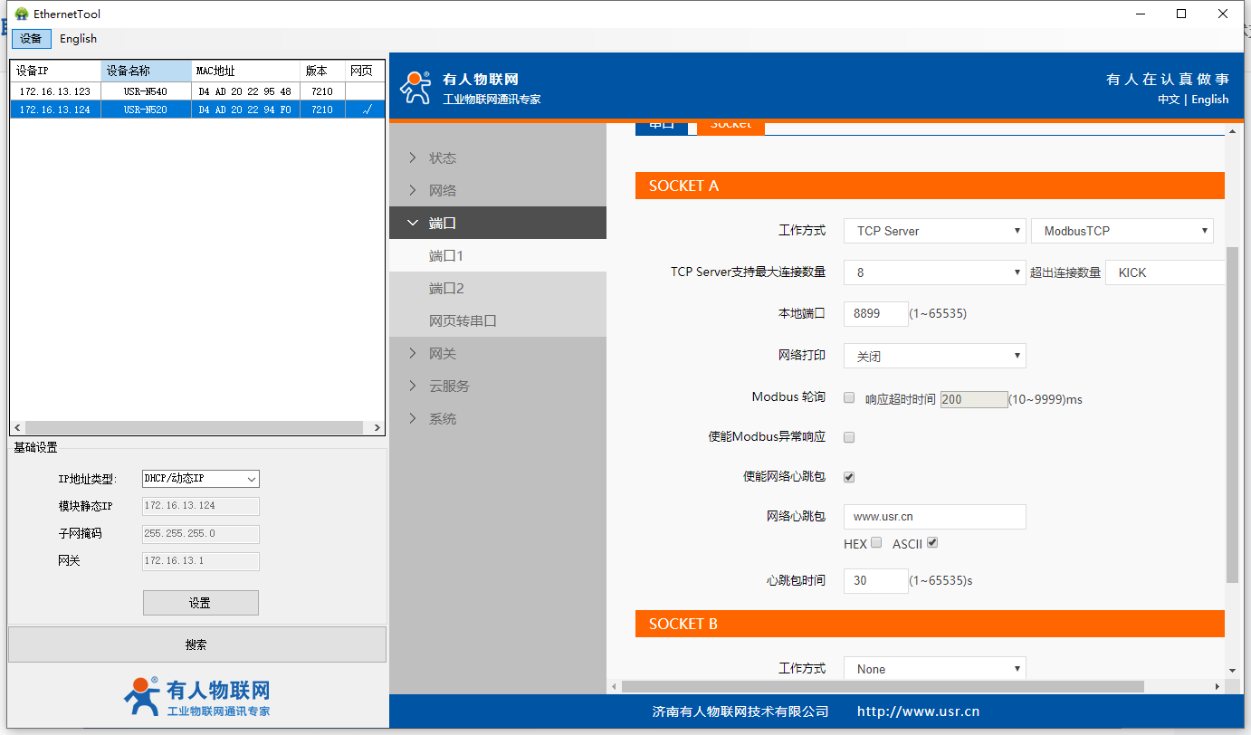 USR-N520-H7-4(二期)modbus網(wǎng)關(guān)功能
