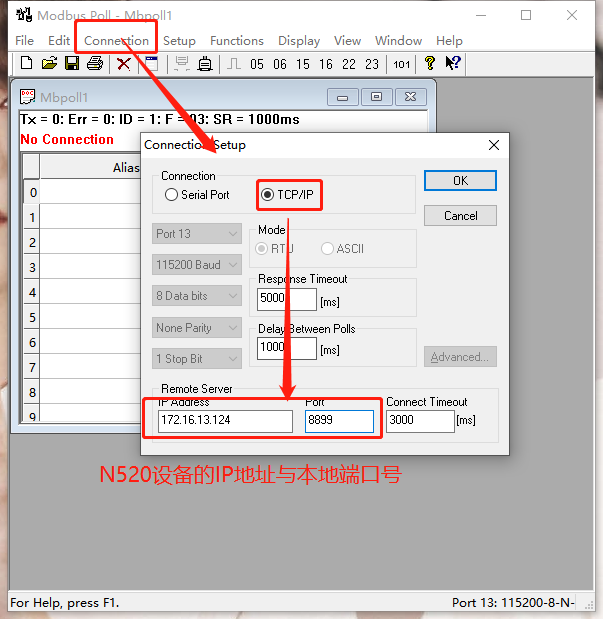 Modbus poll軟件參數(shù):