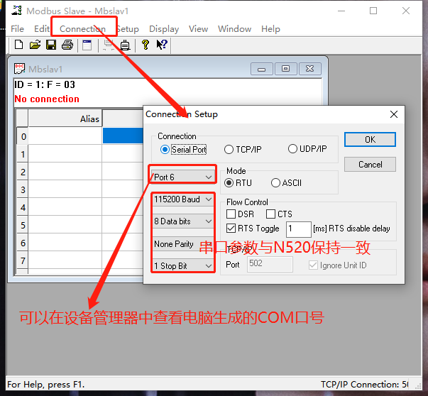 10)串口服務(wù)器設(shè)備串口使用USB轉(zhuǎn)232串口線接電腦,電腦打開modbus poll和modbus slave軟件,設(shè)置軟件參數(shù)