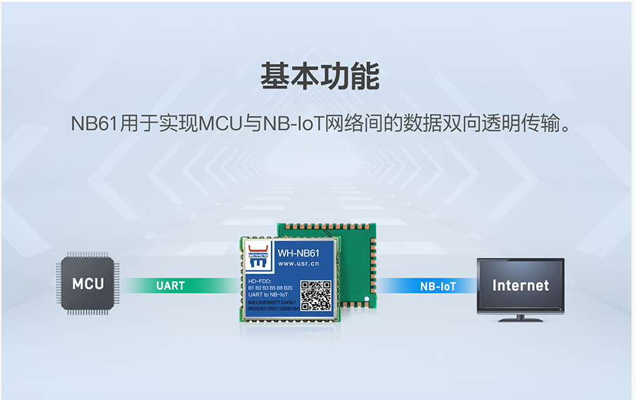 (2)NB61模塊插入NB卡,即可與IP可達協議對等的上位機或服務器建立網絡連接(NB61支持網絡協議:TCP、UDP、COAP)