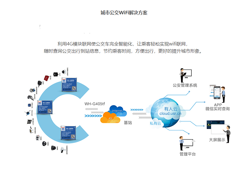 利用4G模塊聯網使公交車完全智能化,讓乘客輕松實現wifi聯網,隨時查詢公交出行到站信息,節(jié)約乘客時間,方便出行,更好的提升城市形象