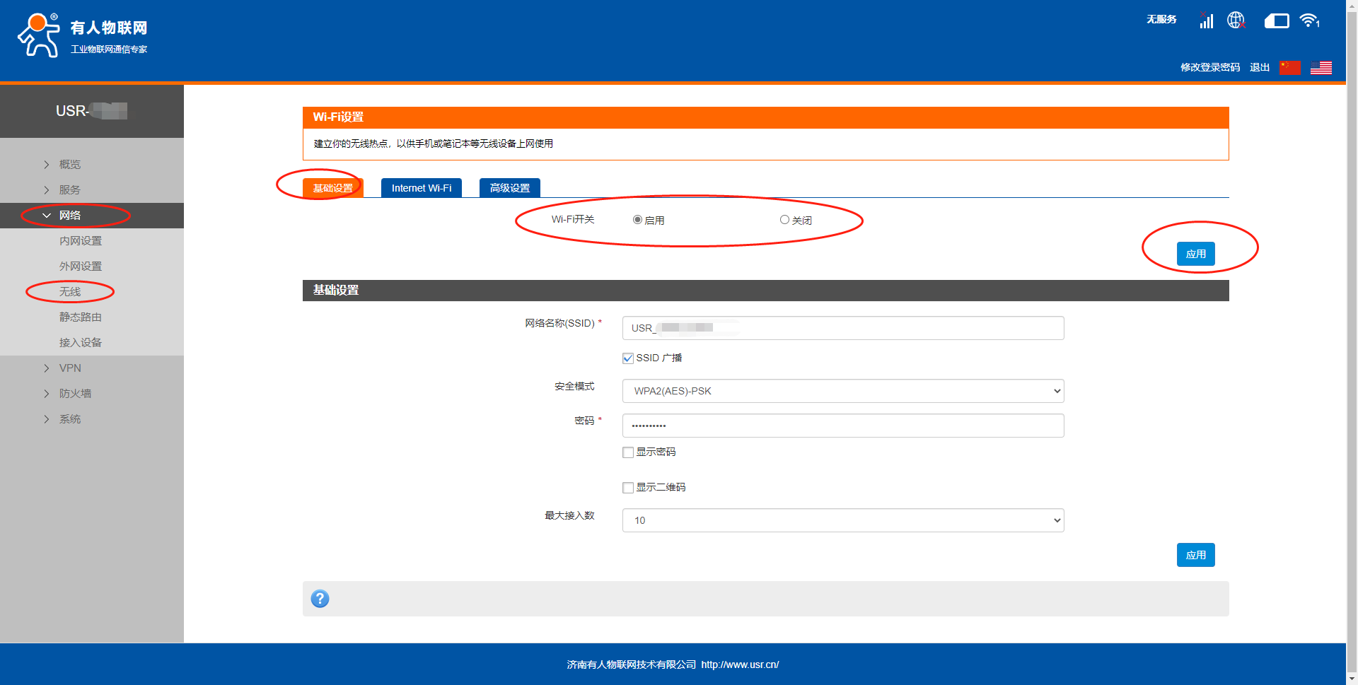 G805(包括RM02、RM03)系列:網(wǎng)絡--無線--基礎設置--WIFI開關--應用