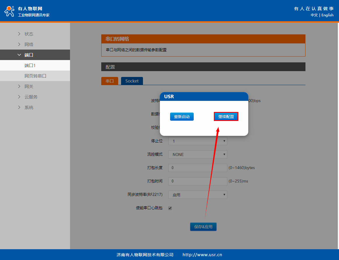 點擊“保存&應(yīng)用”,點擊“繼續(xù)配置”。